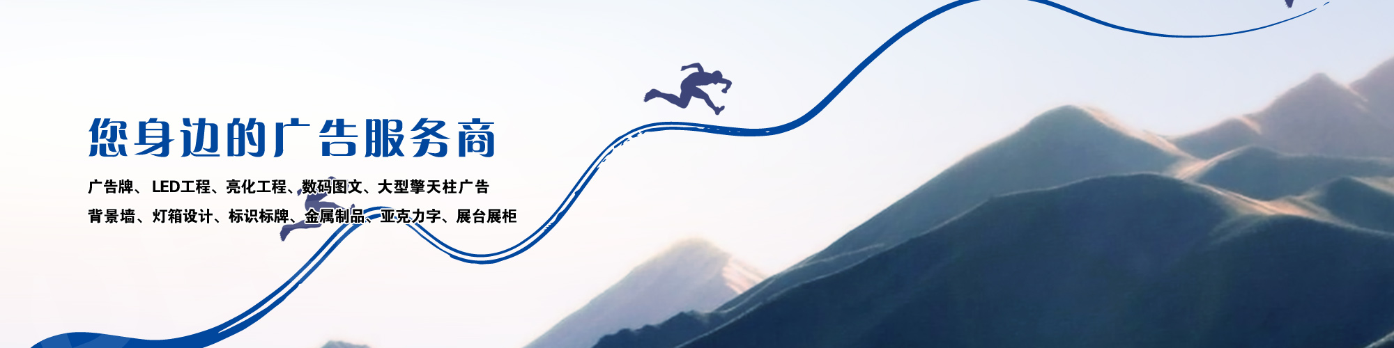 葫蘆島市云峰廣告裝飾有限公司自創(chuàng)立以來(lái),一直致力于廣告牌的設(shè)計(jì),噴繪,制作,安裝、LED工程、亮化工程、數(shù)碼圖文、圍擋制作安裝、三面翻廣告、大型擎天柱廣告、草坪牌、指示牌、雕刻背景墻、燈箱設(shè)計(jì)、標(biāo)識(shí)標(biāo)牌、金屬制品、亞克力字、展臺(tái)展柜、取款機(jī)隔斷、取款機(jī)隔斷等一體化服務(wù),是葫蘆島市噴繪行業(yè)大規(guī)模實(shí)業(yè)公司。